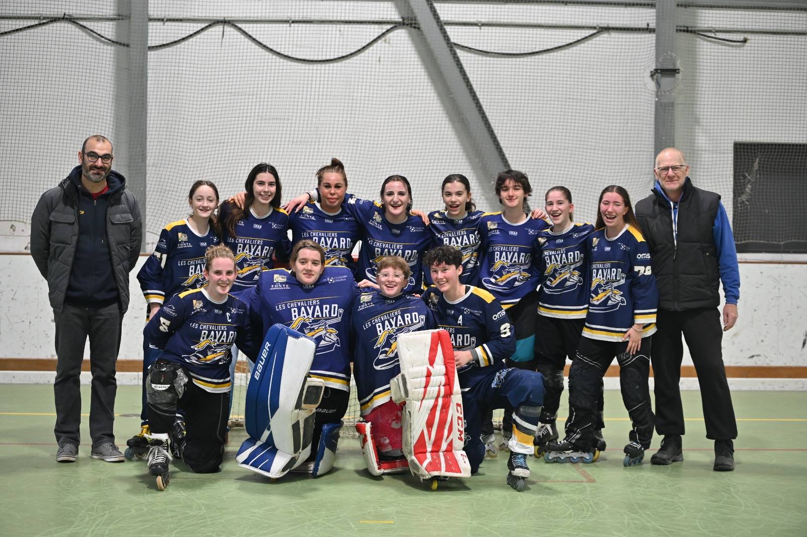 Retour sur le dernier week-end de championnat de notre équipe féminine. Les 13 et 14 décembre, notre équipe jouait à domicile. Pour leur premier match, nos filles étaient opposées à l’équipe de Dourdan, leader de la poule. Notre équipe concéda rapidement 2 buts, puis proposa ensuite un jeu de bien meilleure qualité. Malgré cela, Dourdan dominait le jeu. Les équipes regagnèrent les vestiaires sur le score de 4-1 en faveur de Dourdan. En 2ème période, malgré une bonne entame, notre équipe a eu un passage à vide permettant à Dourdan d’inscrire 4 buts en 5 minutes. Dourdan dominait le match, mais notre équipe continuait de jouer sans se décourager. Nos carolos inscrivirent même 2 buts en fin de match, mais les franciliennes étaient au dessus. Dourdan l’emporte donc sur le score de 10-3.Le dimanche, notre équipe retrouvait celle d’Aubergenville. Nos filles avaient à cœur de prendre leur revanche après s’être inclinées quelques semaines plus tôt, face à cette même équipe. Dès les premières minutes notre équipe montra un très beau jeu, et réussit à mener 2-0 au bout de 5 minutes de jeu. Aubergenville réalisait également un très bon match, et parvint à réduire la marque avant la pause (2-1). Les deux équipes faisaient jeu égal.